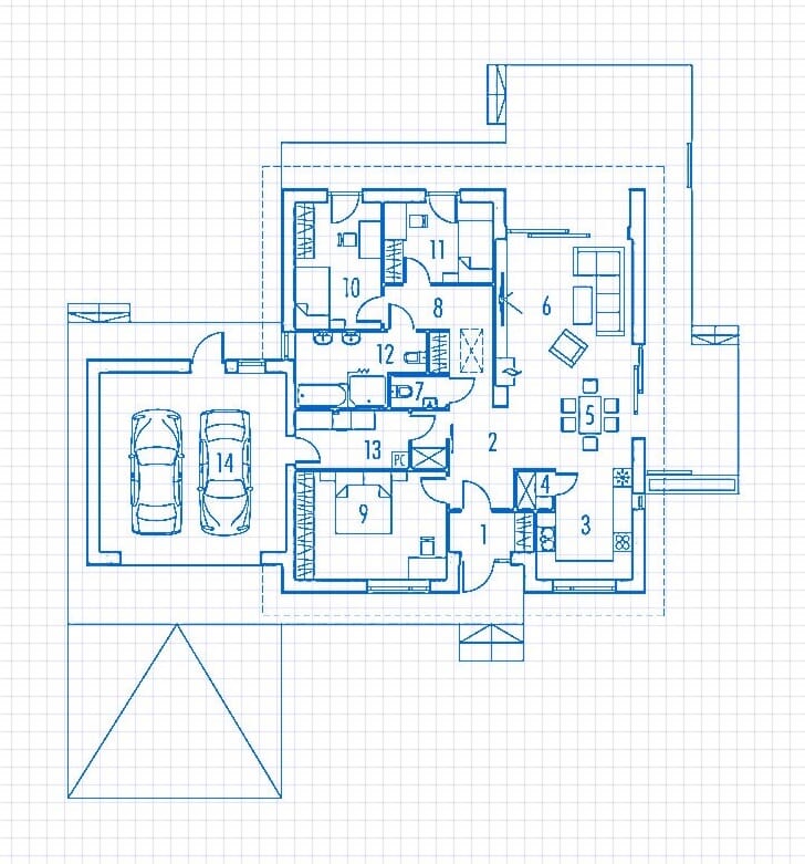 Dimensiunile clădirii: 18,10 m x 13,10 m