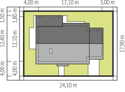 Dimensiunile clădirii: 17,10 m x 12,10 m